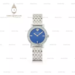 ساعت مچی ورساچه دورحکاکی بند سیلور صفحه آبی Versace