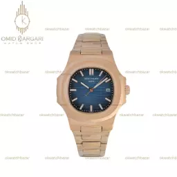 ساعت مچی پتک فیلیپ اتوماتیک بند فلزی رزگلد صفحه سرمه ای Patek Philippe Nautilus